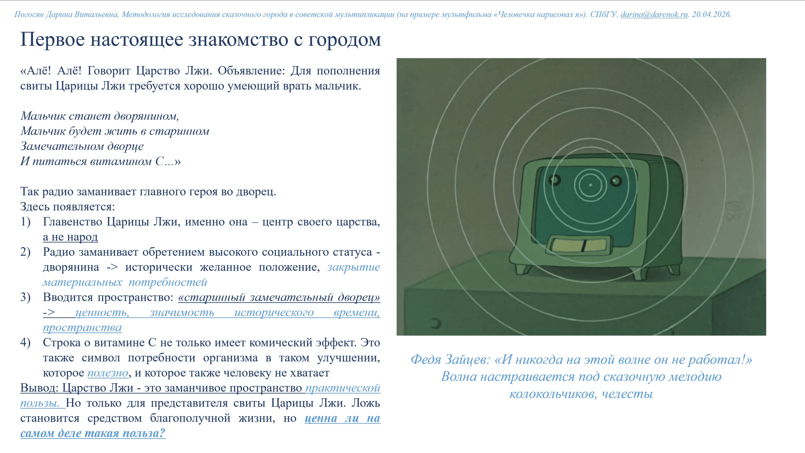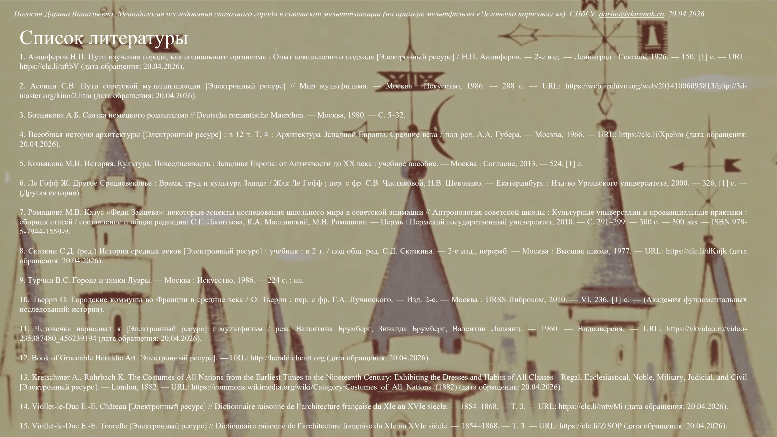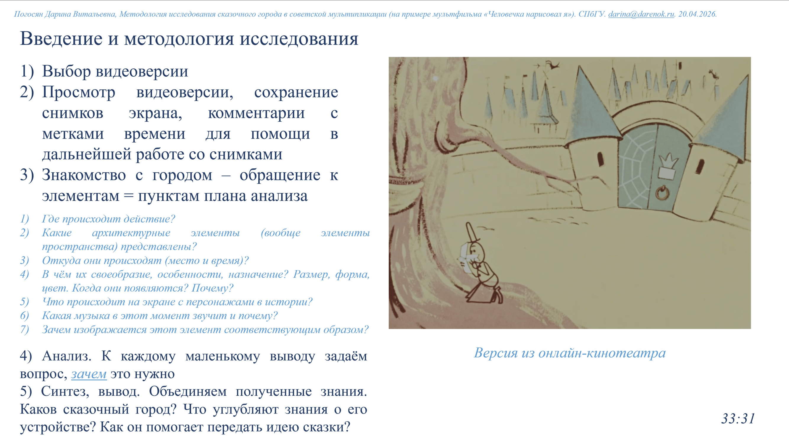 Методология исследования сказочного города в советской мультипликации (на примере мультфильма Человечка нарисовал я)